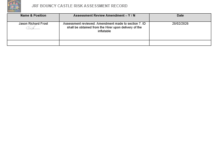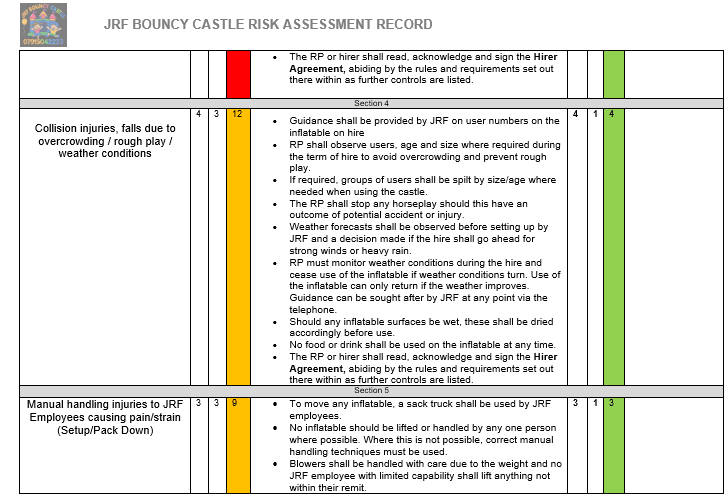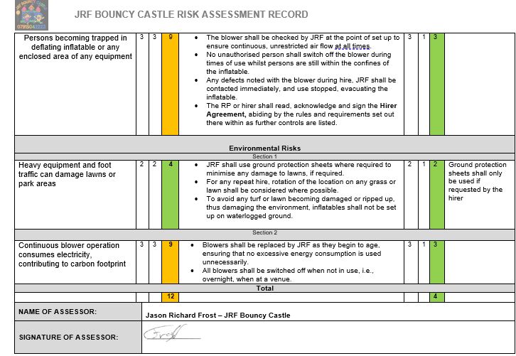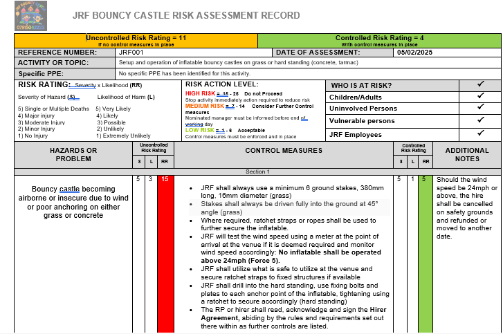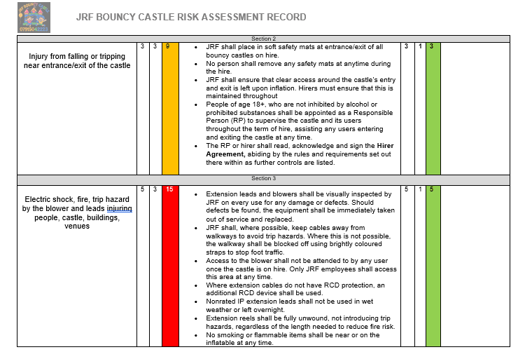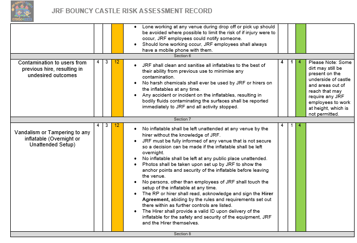 Risk Assessment for your safety and ours.